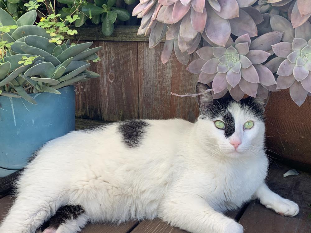Pet Description:Mochi is white with Black splotches. Black tail. Green eyes. Pink nose. Overweight. |