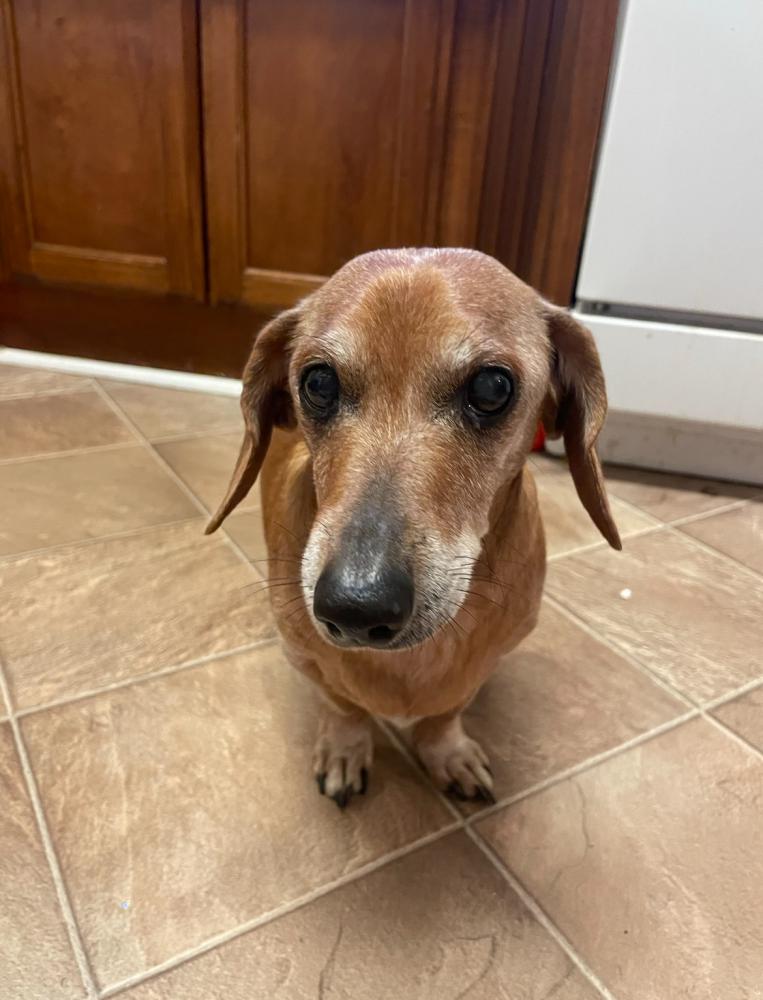 Pet Description:Duke is a 15 year old weenie dog. He has bad vision and bad hearing due to age. He’s got gray chin and paws. |