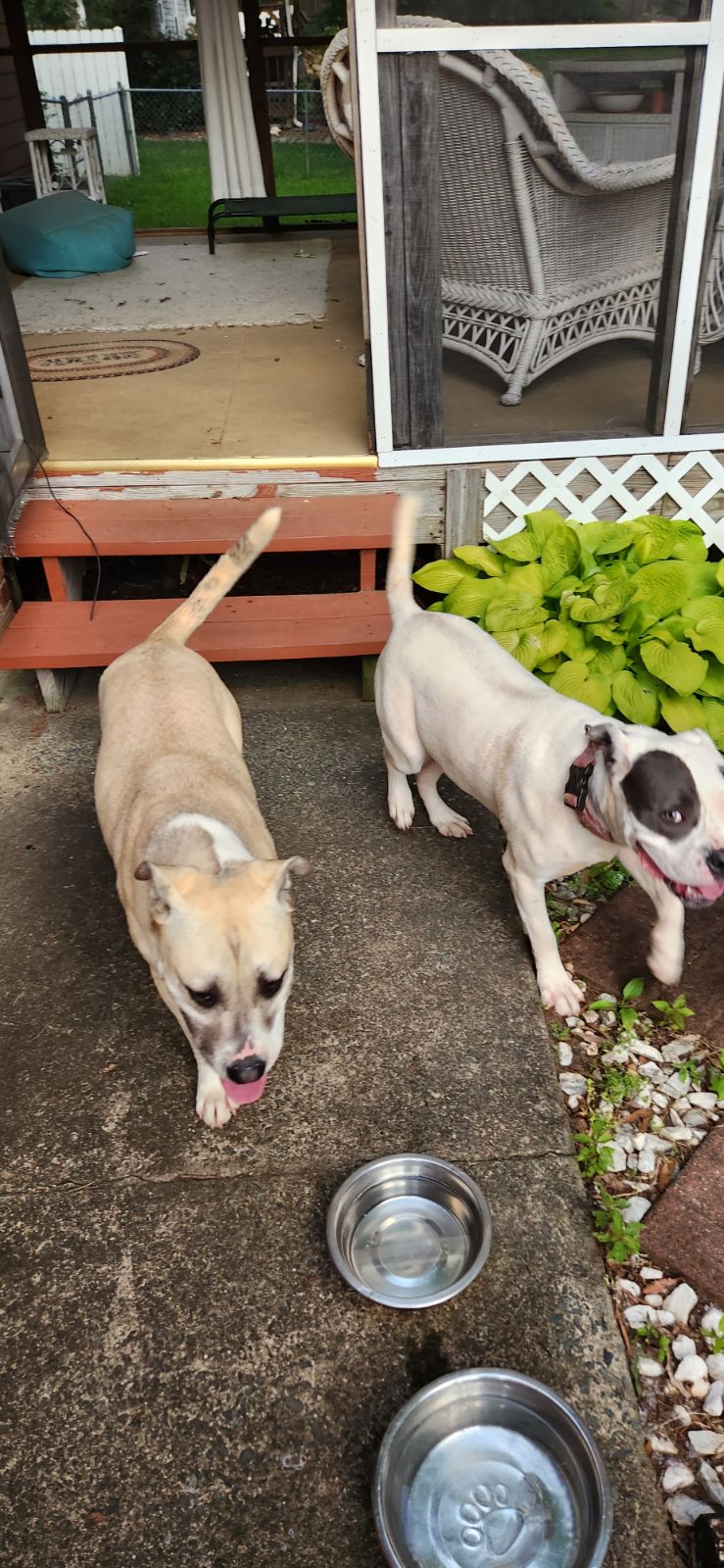 Pet Description:1 black and white pitbull mix and 1 brown black mix both females |
