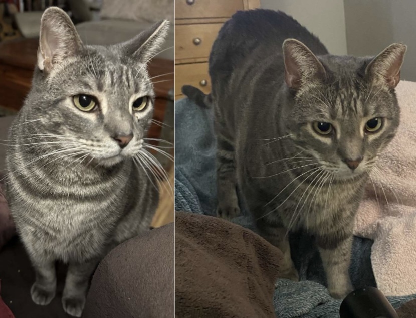 Pet Description:Smoky gray color tabby. Clipped ear. Botton of belly hair is gone. Very sweet but scared of people. |