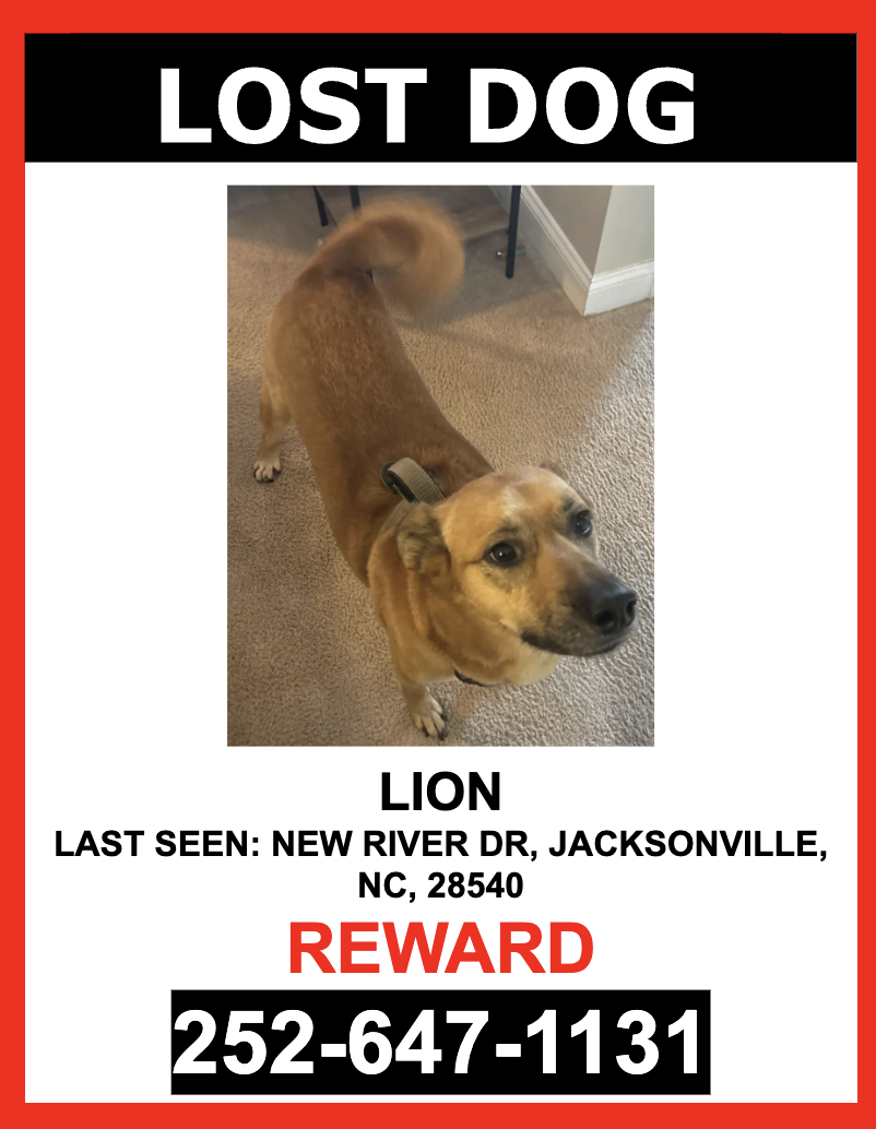 Pet Description:**MISSING SINCE 6/11/24 AT 9:30AM**LION is a MALE, TAN, GERMAN SHEPHERD who escaped and was last seen near NEW RIVER DRIVE.LION is wearing HIS HARNESS with tags and IS microchipped.If you see LION please DO NOT CHASE HIM.PLEASE CALL OR TEXT ONLY.252-329-2332$$ Reward $$ |