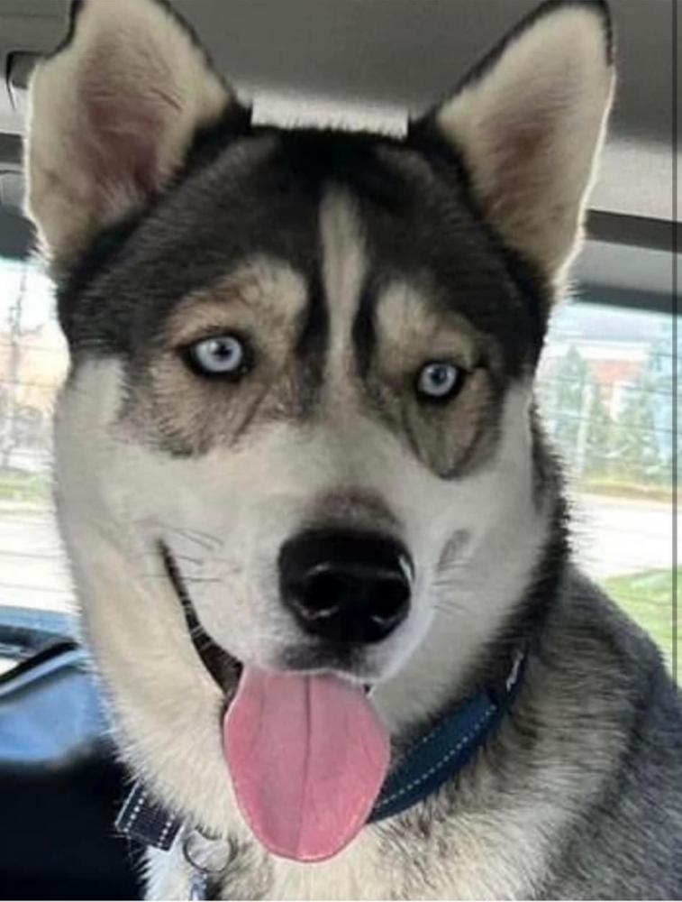 Pet Description:Approx 60 pounds, gray and white with blue eyes, skittish, chipped but without his collar |