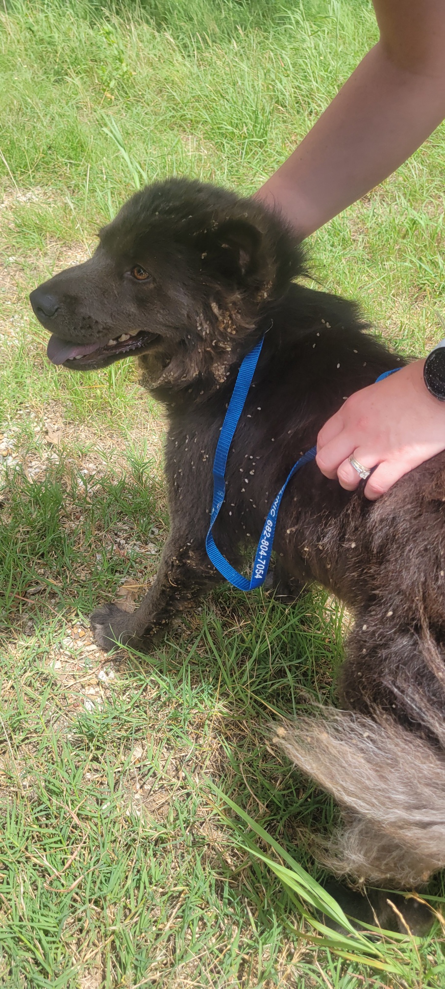 Pet Description:Long hair. Black/dark dark brown. Very friendly pup. |