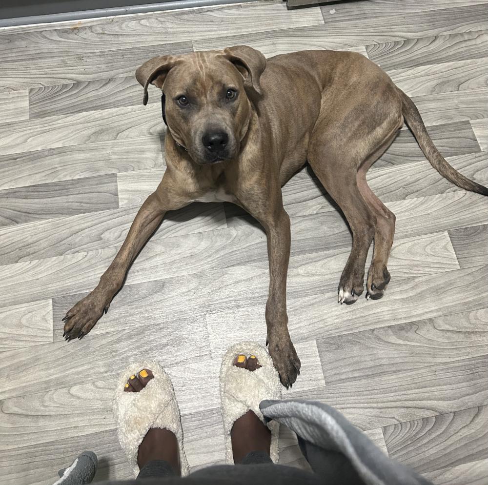 Pet Description:Brindle tan and brown with brown eyes |