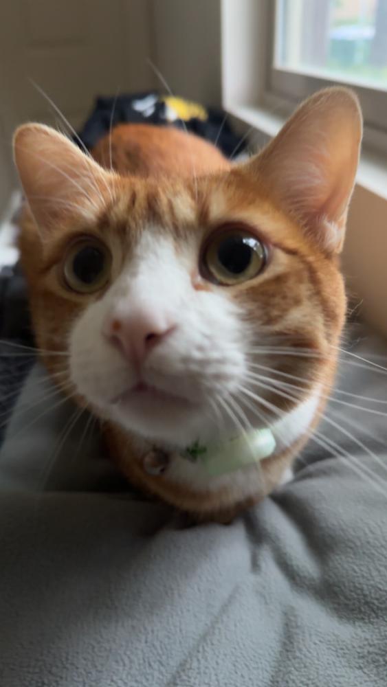 Pet Description:Orange Tabby cat, male, 1 year old, 10-15 lbs |