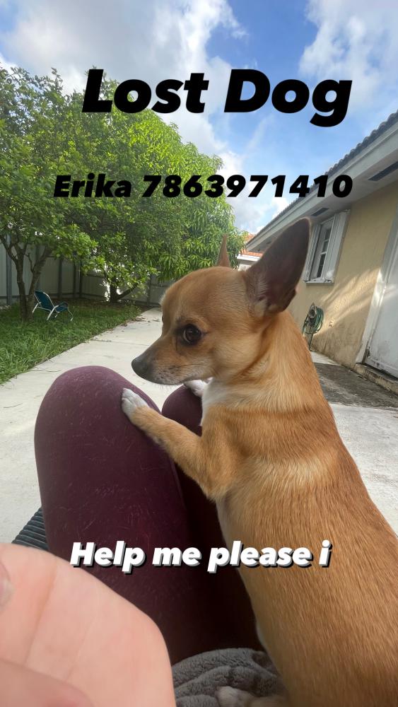 Pet Description:Chihuahua small, light caramel eyes and hair , he has a white line in his forehead |