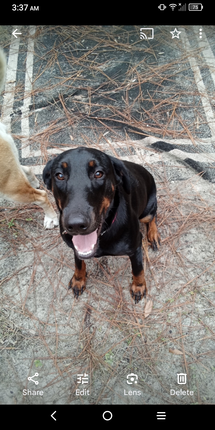 Pet Description:Mazikeen is doberman and blue heeler mix she has had one litter of puppys she is shy and very rambunctious she comes to mazy if you chase her she will run |