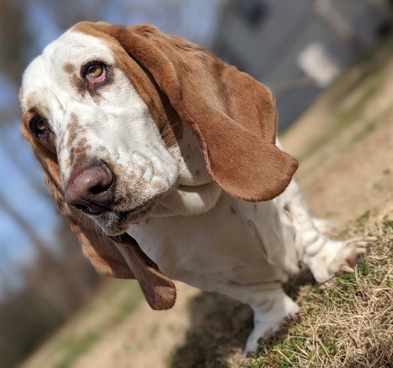 Pet Description:Female Basset Hound. Brown and White. No collar |
