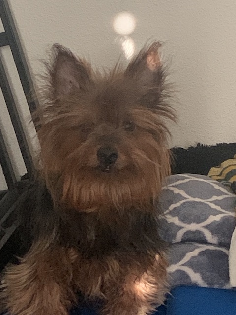 Pet Description:Brown, black, gray, white Yorkshire terrier One paw with unique nail that is being treatedMedium sizedFriendly |