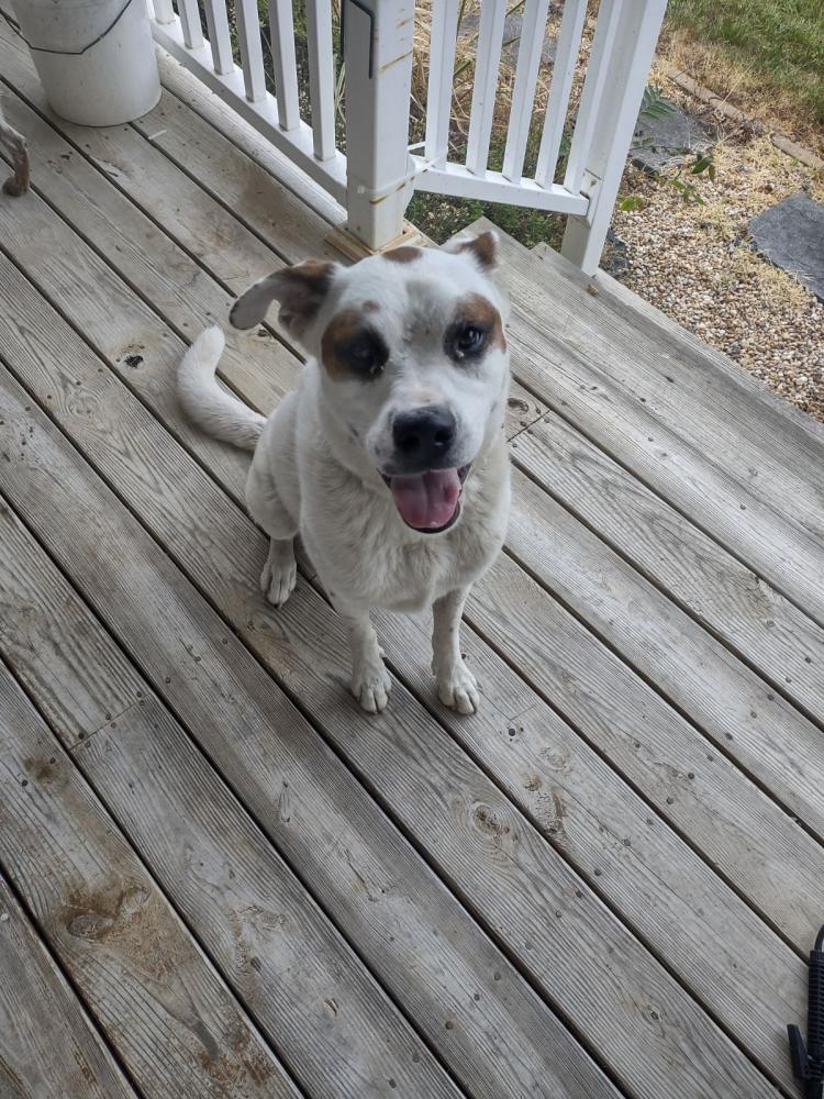 Pet Description:Male, neutered, white with brown patches on his eyes and on his back. Very playful and friendly. Found with the little one pictured. |