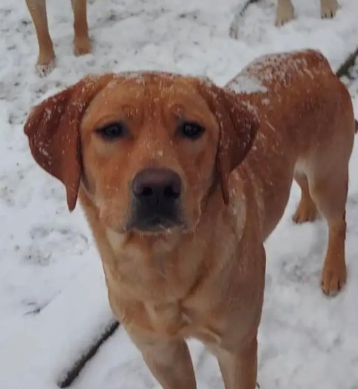 Pet Description:Wearing 3 collars2 orange, 1 cow pattern |