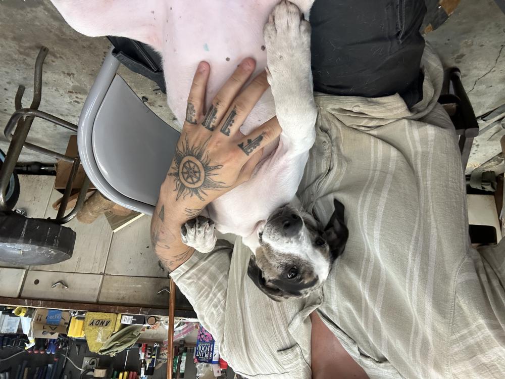 Pet Description:Small three month great daine, friendly spayed and sleeps alot |