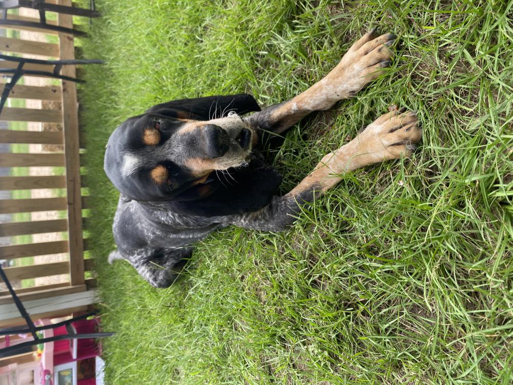 Pet Description:Blue tick coonhound dog , name is cowboy , male, has cherry eyes badly , very large dog .very playful and not aggressive, reminds me of Clifford:( |