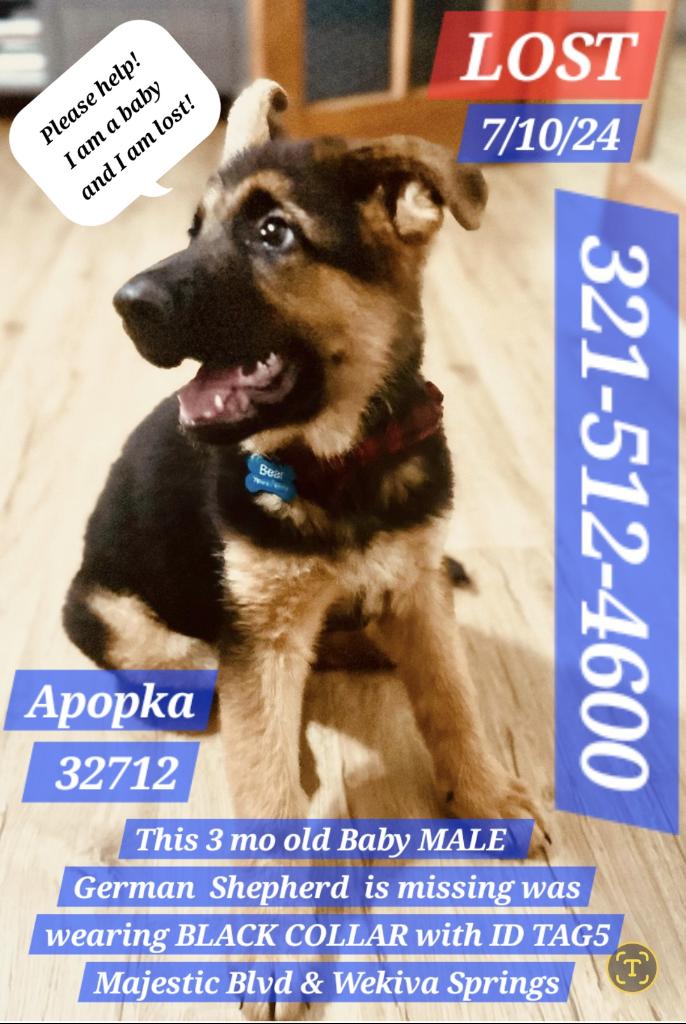 Pet Description:3 month old German Shepherd puppy, male, ears are still flopping around. |