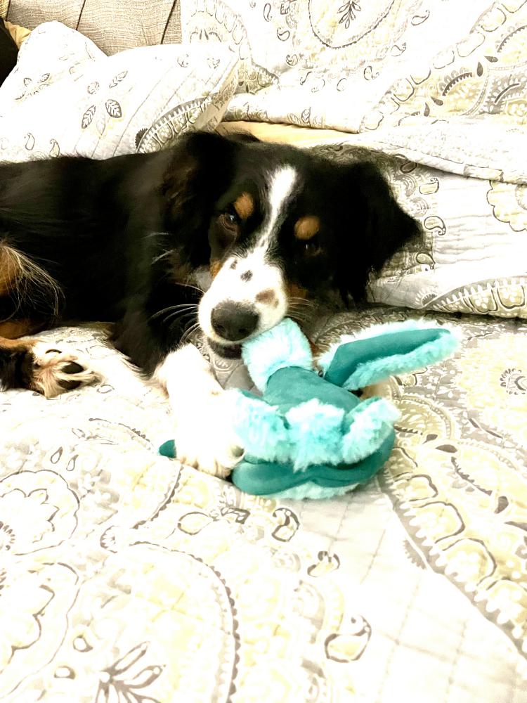 Pet Description:30 lb black/white/tan Female Mini Aussie. |