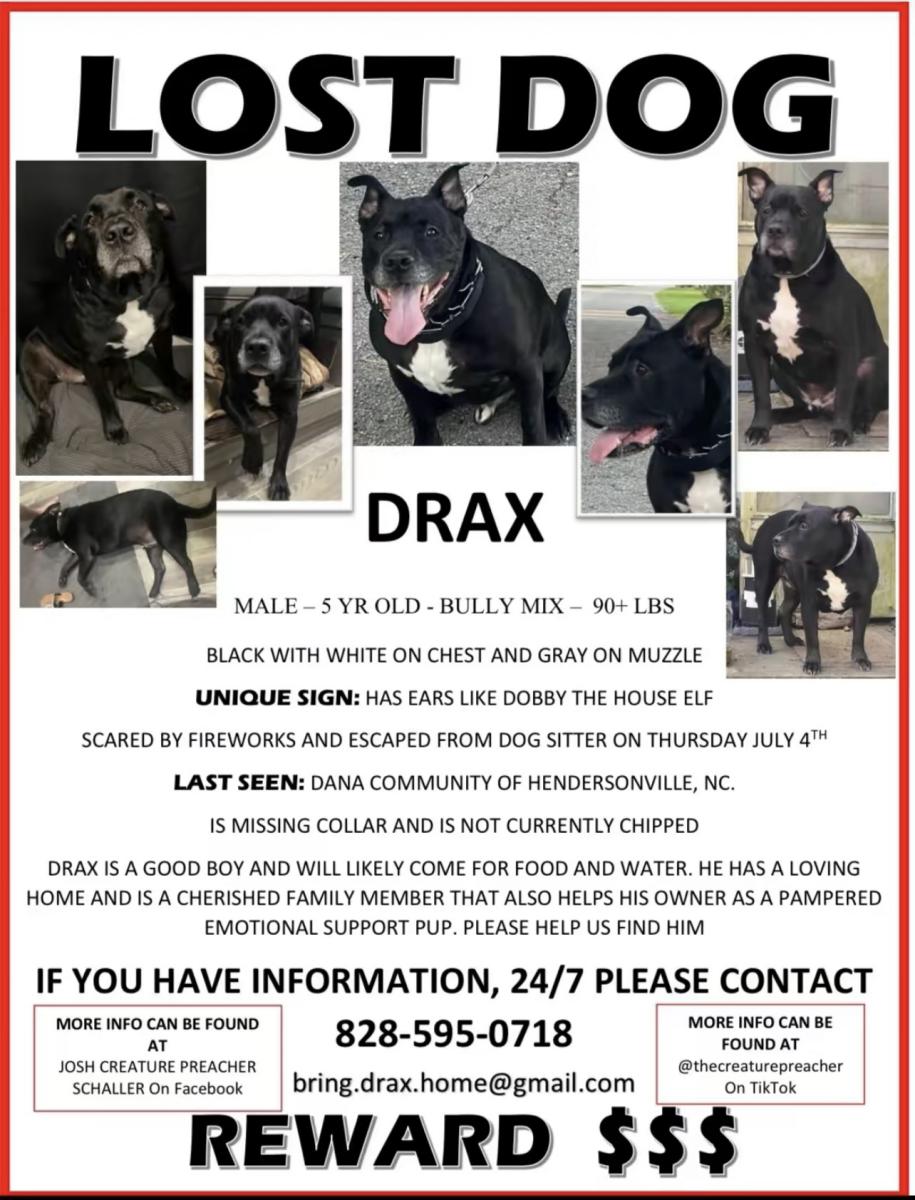 Pet Description:Black with white blaze on chest, gray muzzle. No white on paws.Ears like Dobby the house elf. Large, approx 80 lbs. Last sightings have been around Dana rd/tracey grove area, mustang cafe, the long shot golf range, tequilas bar and grill and 4 seasons blvd. Do NOT chase, but get a pic/video if you can. |