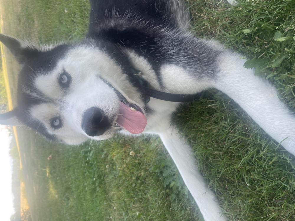 Pet Description:Black and white Siberian husky (1year) with ice blue eyes. Approx 70 pounds. Someone stole him from my yard and double wrapped a chain around my front gate (to hinder if someone was after them?) |