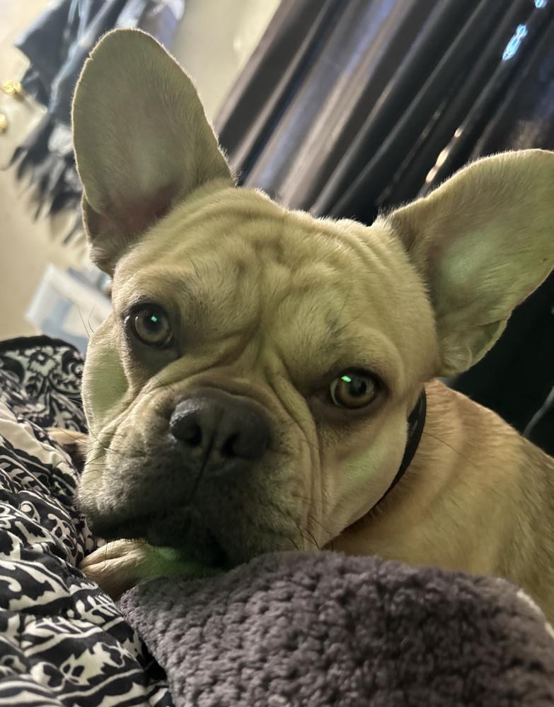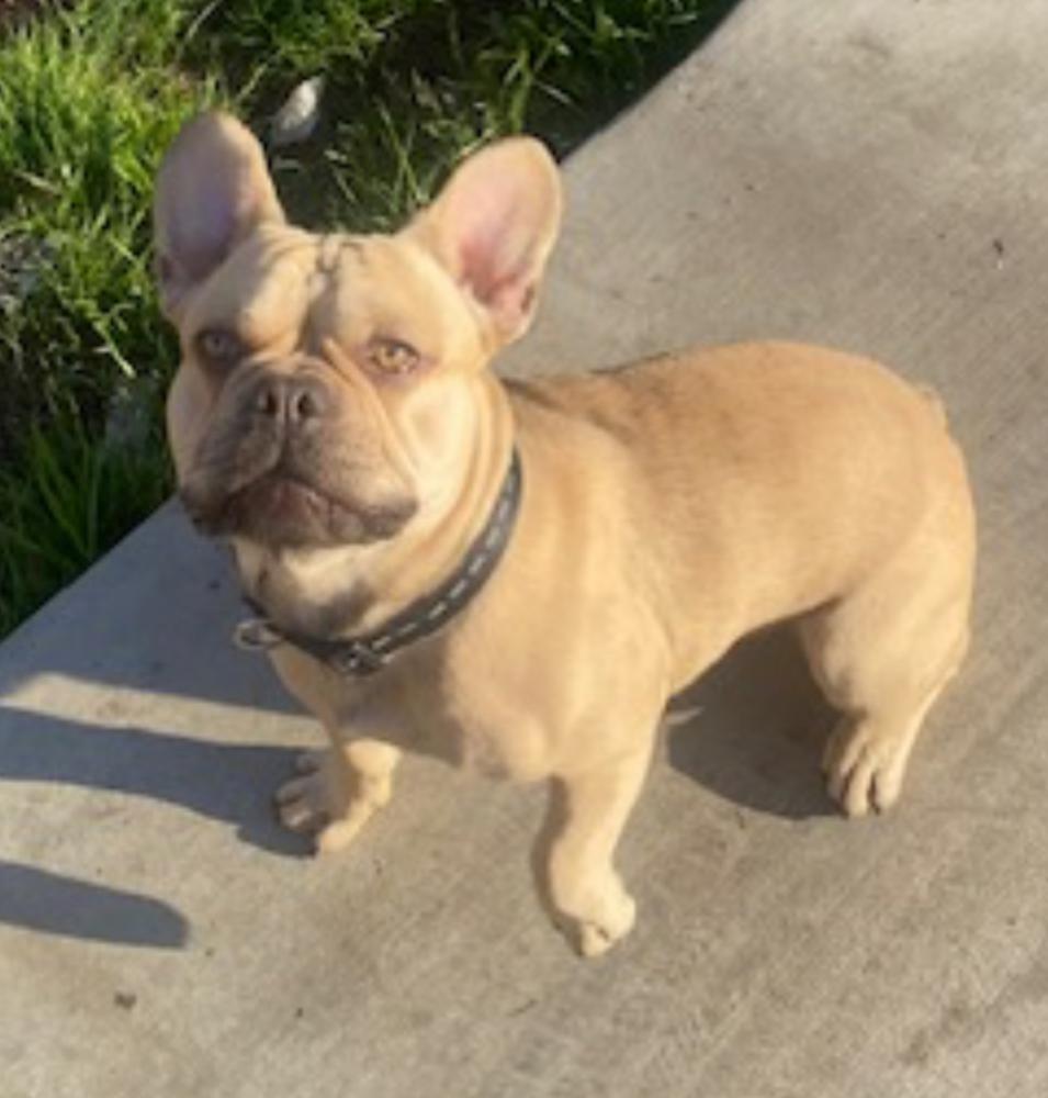 Pet Description:Small French Bulldog. He is a sweet boy, but can be protective of strangers. He is golden with dark brown markings. He has a larger than life appetite and is very spunky. |