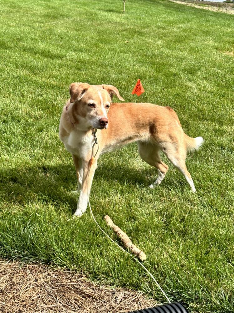 Pet Description:Peyton is a fixed female, medium sized with lighter brown fur and white markings. She has a red nose, white stripe down her nose, and her tail is feathered with a white tip. Very sweet but skittish especially when it's storming or raining. She is also microchipped. |