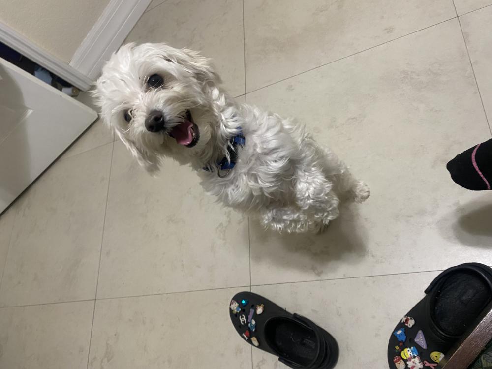 Pet Description:White male maltese about 6 lbs, has a blue collar. Responds to Yu, Yukon, Yuyu. Has a microchip. |