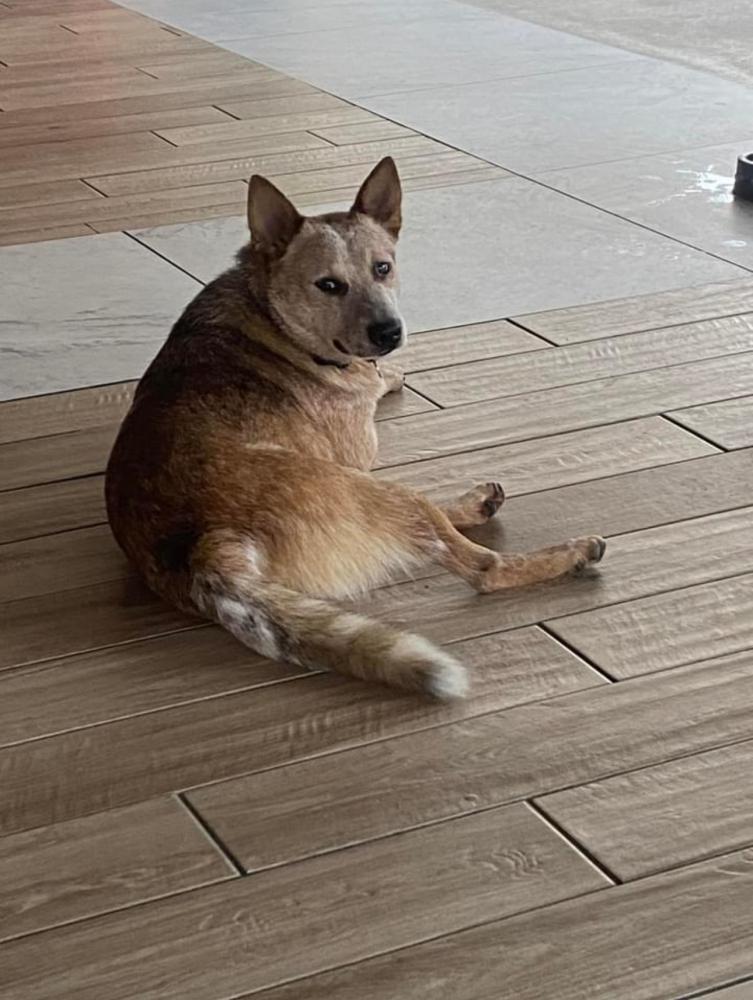 Pet Description:He is wearing a collar with his information on it. He is a very friendly dog so he won’t do anything if approached. |