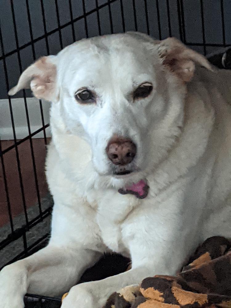 Pet Description:She is approximately 60-65 pounds. Wearing a pink collar. 15 years old with some loss of hearing and eyesight. |