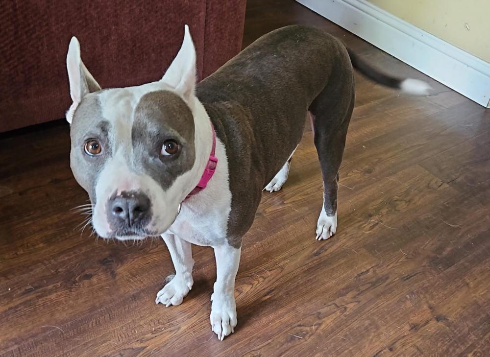 Pet Description:Our dog, Annie, went missing on August 9th from Reiner Rd, out between Old Owen and Old Pipeline. She is a gray & white pit bull mix with giant ears that stick out straight from the top of her dome. Shes about 45lbs pounds but built like a brick house. She's got on a pink collar with our phone numbers, both mobile and home phone. |