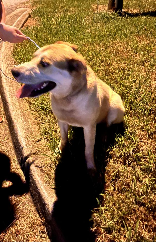 Pet Description:Tan and cream lab mix male dog |