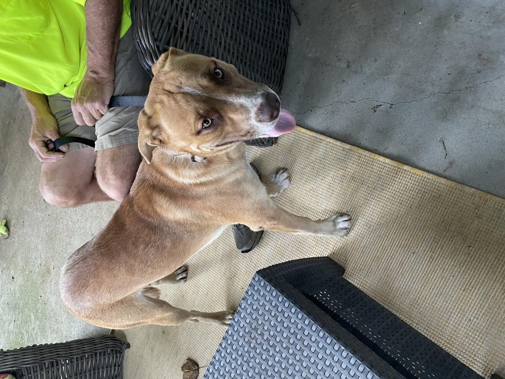 Pet Description:Medium size, male dog with white tip at end of tail, light color paws. Happy go lucky, clean teeth, and very loving. Appears to be a young teenage boy. |
