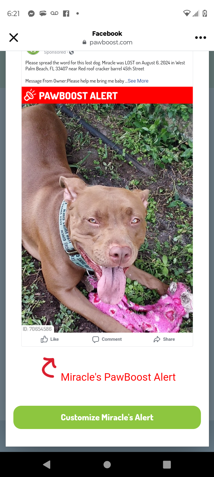 Pet Description:She is a light brown with a little bit of white on her chest. She had on a green collar. |