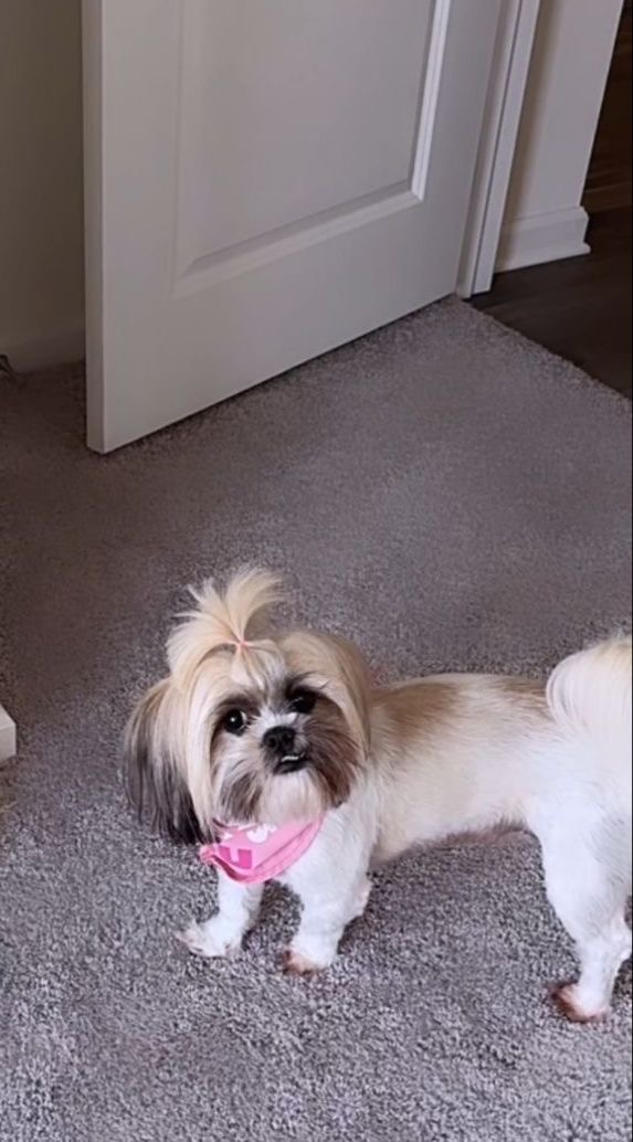 Pet Description:Is a small white, brown and tan Shih Tzu |