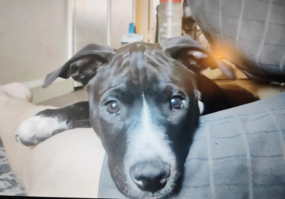Pet Description:large black and white female pitbull. white on her chest, paws and nose. |