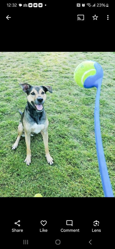 Pet Description:Mix breed shepherd/ Boxer short hair***70 lbs******8 year old male******White patch on chest******Gray in muzzle******Will come to you if you hold a tennis ball out for him***Will get in your car if you pat where you want him to jump up & say |