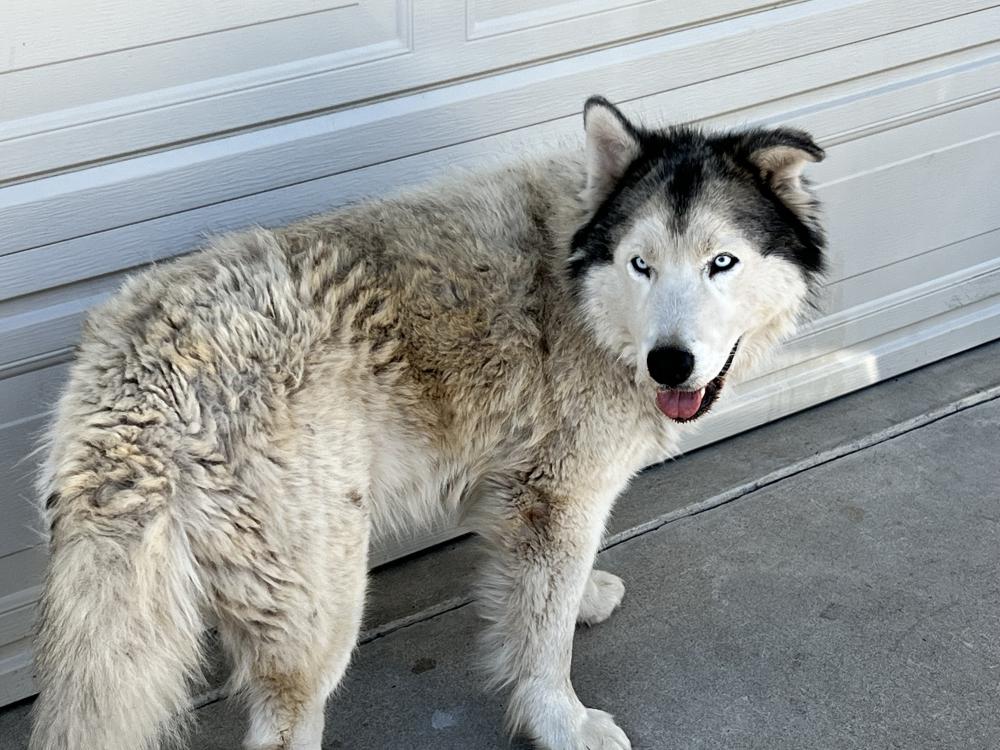 Pet Description:Neutered male , Cream colored Looks like part husky face and greater Pyrenees body Nice temperament but seems to have been lost for a while Hair very matted |