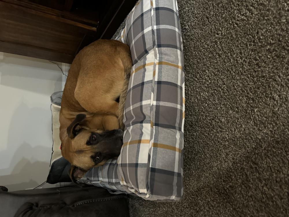 Pet Description:Brown/black mixed breed dog large |