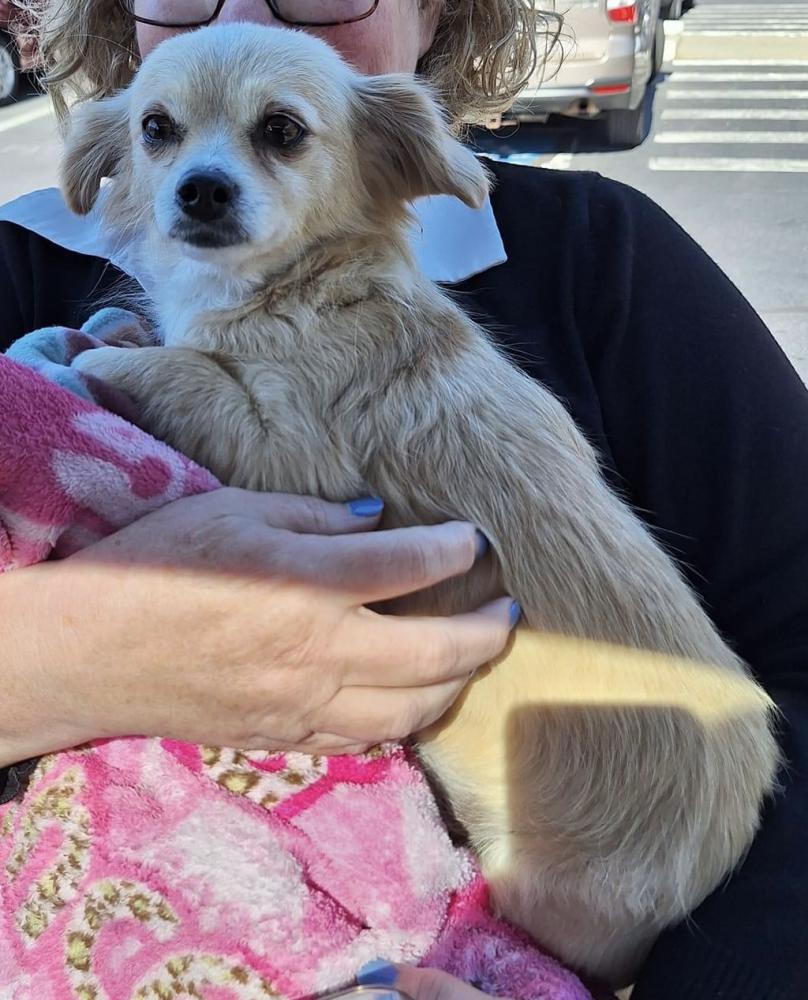 Pet Description:Timid spaniel/Chi mix, long furry tail, approximately 10 lbs |