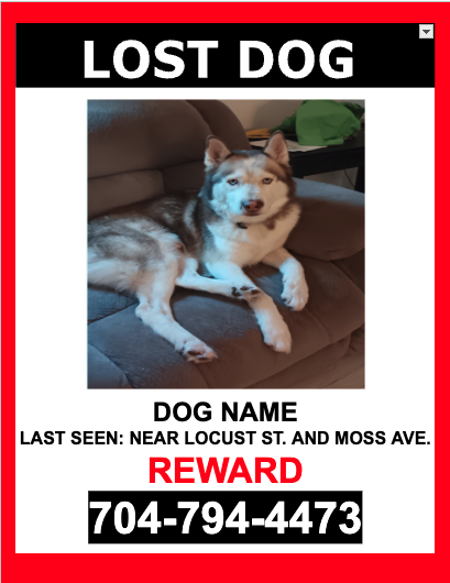 Pet Description:**MISSING SINCE 10/09/2024 AT 08:00 PM**PUMPKIN is a MALE, BROWN AND WHITE, SIBERIAN HUSKY who escaped and was last seen near LOCUST STREET AND MOSS AVE. PUMPKIN is wearing HIS COLLAR with tags and IS NOT microchipped.If you see PUMPKIN please DO NOT CHASE HIM.PLEASE CALL OR TEXT ONLY.704-794-4473$$ Reward $$ |
