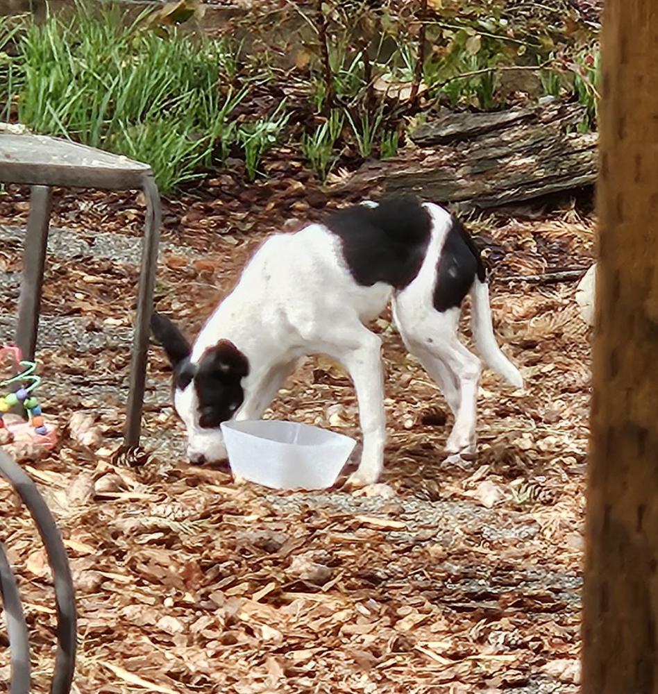 Pet Description:Medium white with black markings. Pointed ears. Thin with no collar. Gender unknown. |