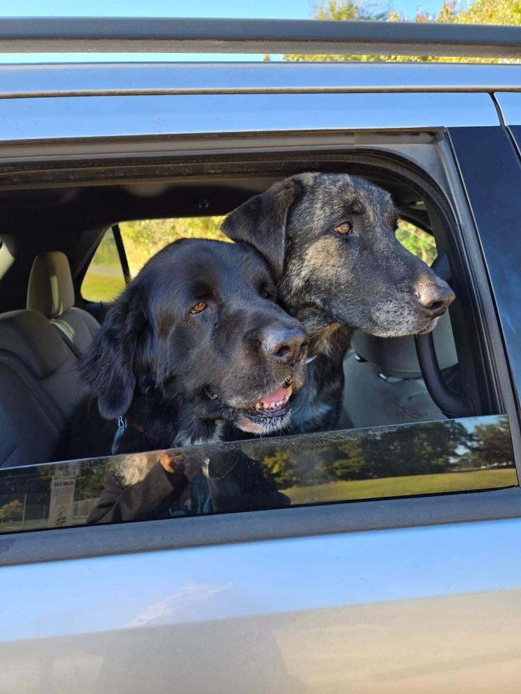 Pet Description:Found a male Bernese mountian dog and a female brindle shepard mix with dual due claws on side of the road both have collars females has a purple collar the male has an orange collar. Very friendly. |