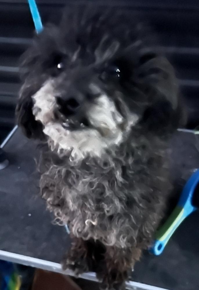 Pet Description:Small poodle. Very timidBlack with a grey beard and mustache. |