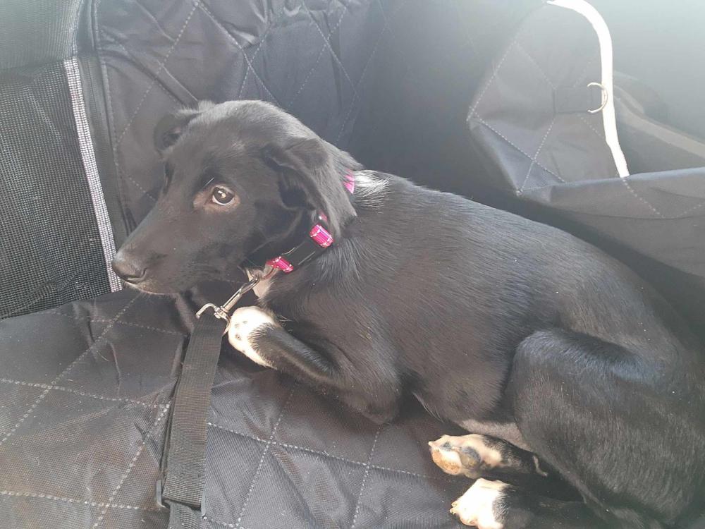 Pet Description:Mixed short-hair border collie, black with white spots on neck and paws. She is very energetic and friendly. |