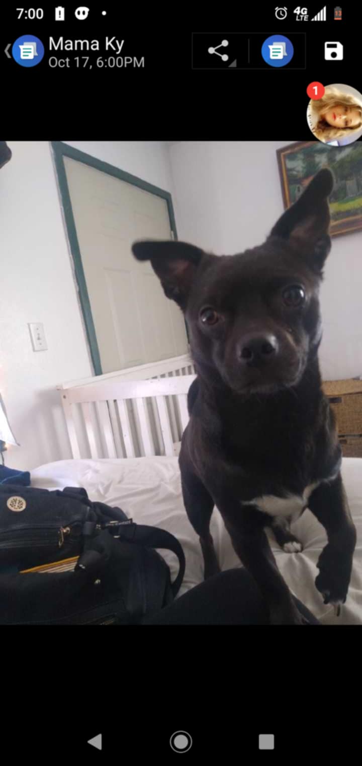 Pet Description:He's a dark dark Coco color that looks almost black with ears that stick up a curly tail white tip toes a white vest on his chest a white tip tail he's 2 years old he had a bluish green vest on and a striped leash and he's a Chihuahua and Boston terrier mix. |