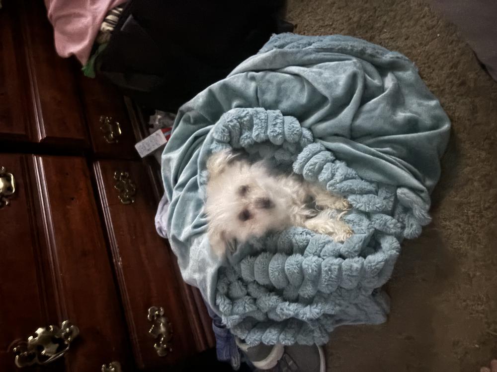 Pet Description:She has a reddish brown color by her eyes and she’s very shy but she comes to the name velma |