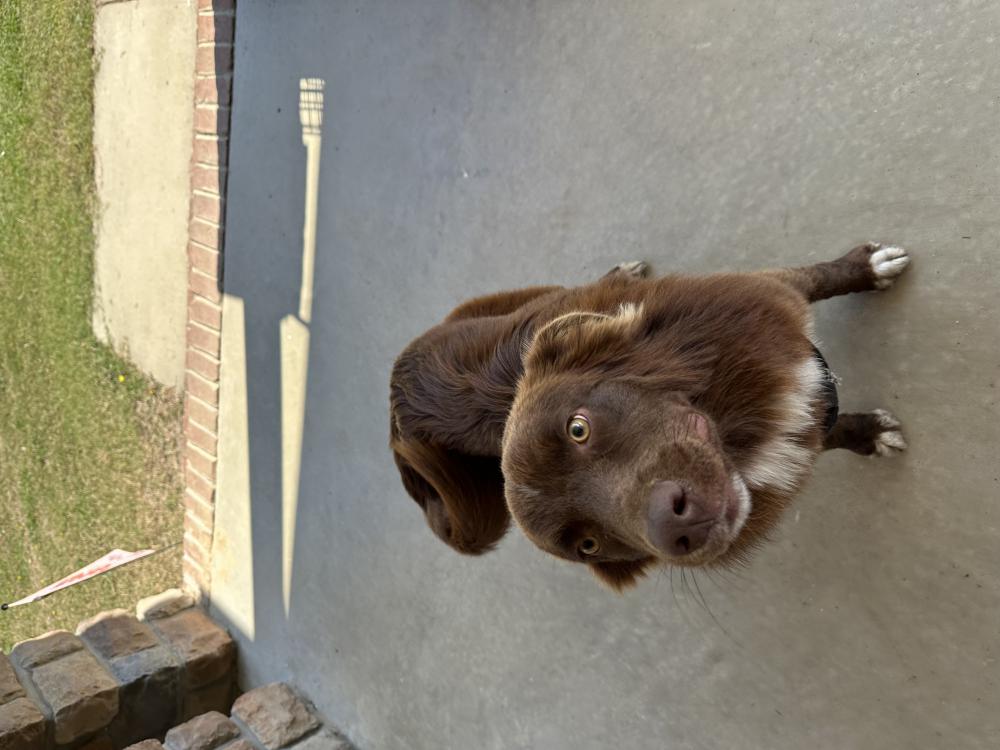 Pet Description:Looks to be an Aussie with a tail. Red-tri male. Very sweet, smart, playful. Is in good weight and looks to be healthy. |