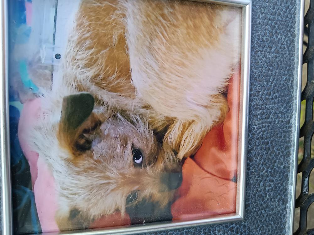 Pet Description:Golden tan in color. 6-7 lbs. Was wear a winter jacket. It was brown with an orange and teal blue stripes. On her head she has a spot that sticks up like a Mohawk or sometimes it curls. |