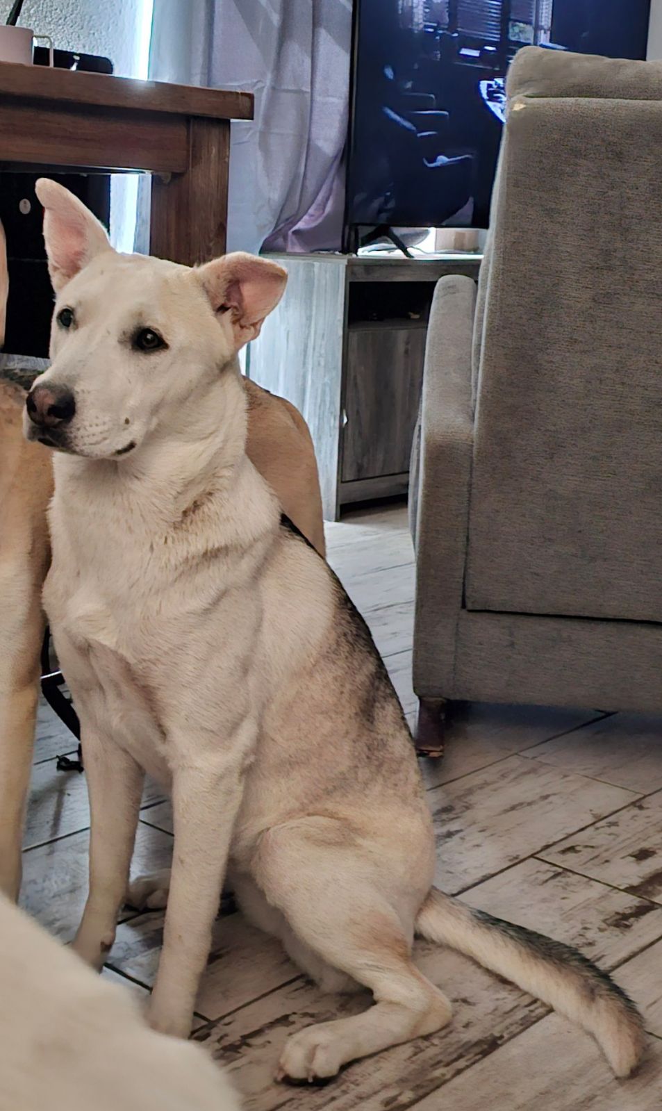 Pet Description:CC is a husky mix white coat with black fur on her back and dark brown eyes |