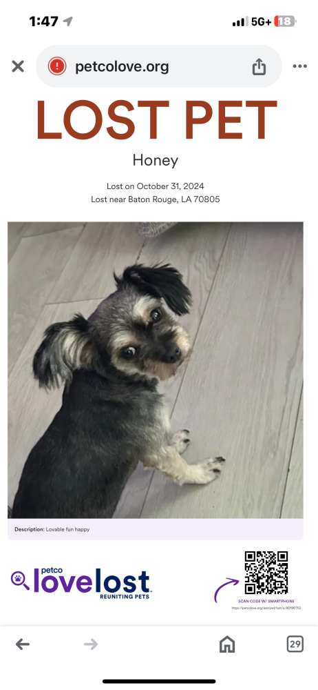 Pet Description:Friendly but it’s my baby dog and she is devastated.. please return… |