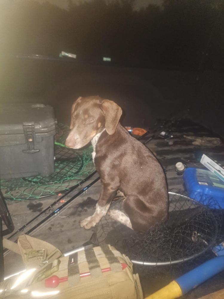 Pet Description:Dark brown, very young, maybe between 3-6 months old. White feet with spots |
