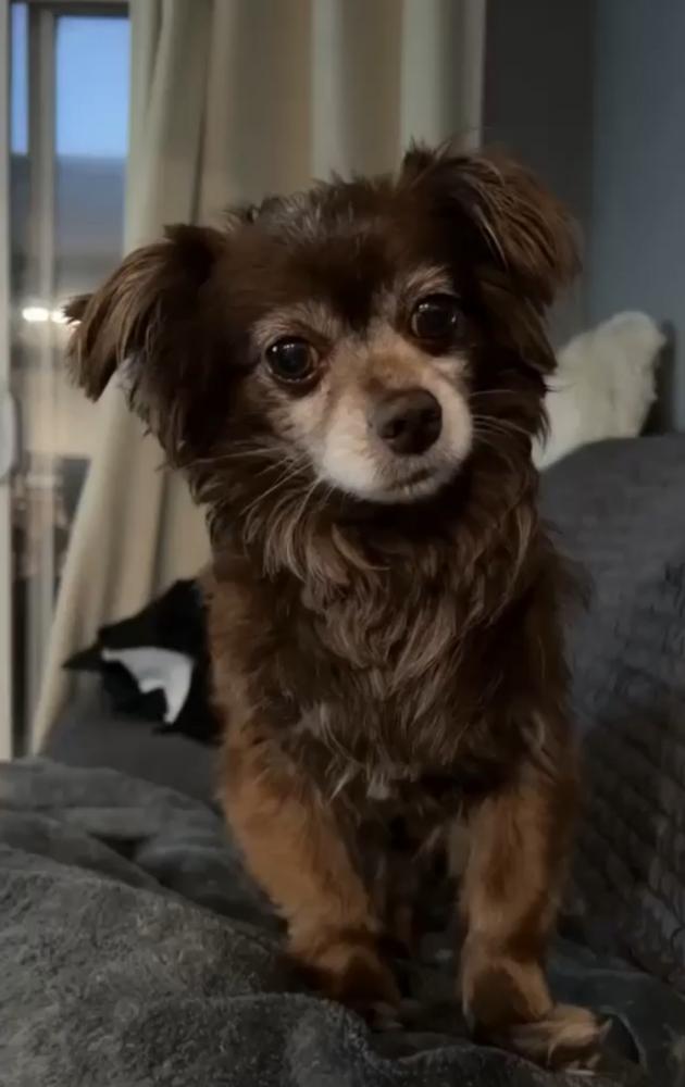 Pet Description:Long hair Chihuahua hair is cut short with white hair on the nose. |
