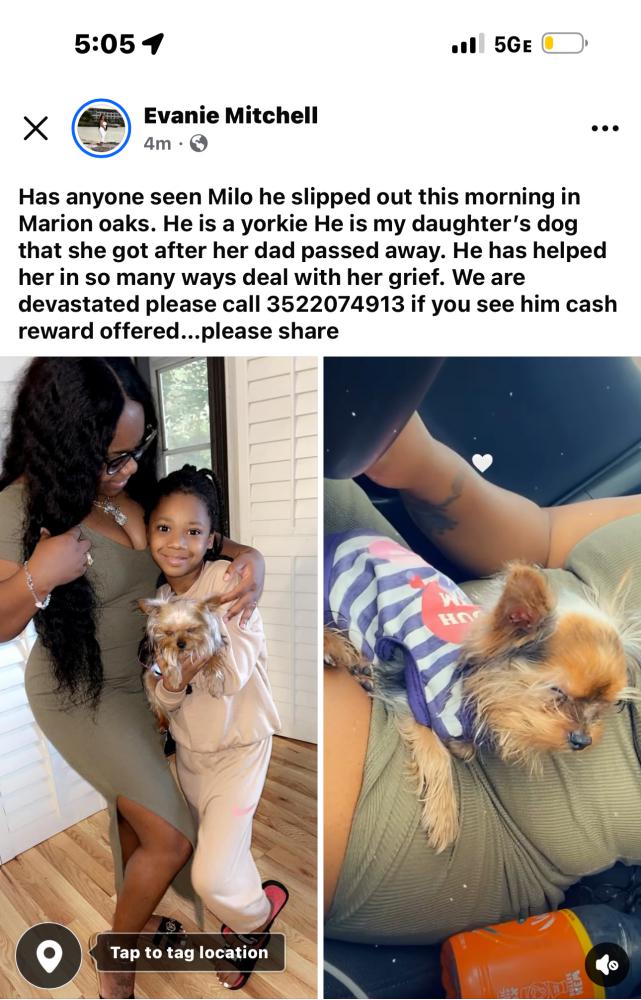Pet Description:Small yorkie about 3 pounds, black, brown with a small amount of white. It is a male he is 1.5 years old. |